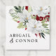 Elemente: Aquarellmagnolien mit grünem und rotem Blattwerk, moderne Schriftart. Farben: weiß, grün, rot, krümelig. Themen: Modern, lustig, Sommer, Ziel, Strand, Palmen, Regenwald, botanisch, floral. Sammlung: Sortiment Tropischer Magnolia Sortiment von weißer grüner Hochzeit in Urlaubsort Produkttyp: Liebesmarken