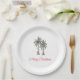 Tropical Merry Weihnachts-Party Papier Teller, mit einer Palmen Illustration und Schrift Typografie. Mit anpassbarer Schrift fügen Sie Ihre eigenen Informationen hinzu. Eine festliche Ergänzung zu Ihrem Urlaubsziel oder Beach-Dinner-Tisch.