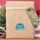 Destination Beach Wedding Favor Stickers mit individuellem "Dankeschön" Text und die Braut- und Bräutigam-Namen und Hochzeitstag mit einem tieftürkisblauen Hintergrund und einer sanften Sandstrand Welle. Diese Hochzeitsmarken eignen sich hervorragend für die Versiegelung oder Dekoration von Gunst und Rückgabe von Geschenkverpackungen für eine Hochzeit mit einem modernen Retro-Strandvibe.