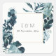 Tropical Monstera Blue Foliage Monogram Wedding Quadratischer Aufkleber
