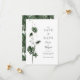 Die tropische Save the Date Karte ist mit Palmenblättern bepflanzt. Monstera Palmblattmuster auf der Rückseite mit Monogramm und Datum.