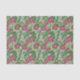 Auf dem Tissue Papier befinden sich tropische Blätter aus rosa und grünem Monstera, Bananenstauden, goldfarbene und grüne Palmenfronten auf hellgrauem Hintergrund. PASSEN Sie Geschenktaschen, Packpapier und Band in unserem Geschäft.
