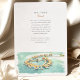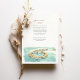 Mit dieser atemberaubenden Hochzeitseinladung in Aquarellfarben laden die Bungalows Sandals Montego Bay, Jamaika, zu einem traumhaften karibischen Fest ein. Die hübschen Bungalows mit Strohdach sind in einer einmaligen, herzförmigen oder kreisförmigen Form über dem kristallklaren türkisfarbenen Wasser des Karibischen Meeres angeordnet. Die Szene, die in einem sanften, traumhaften Aquarellstil gestaltet wurde, erweckt die ruhige Schönheit dieses tropischen Paradieses mit sandigem, flachem, weitläufigen tropischen Blattwerk und einem sanften Himmel. Diese Einladung eignet sich perfekt für eine luxuriöse Hochzeit in Urlaubsort, eine romantische Strandfeier oder ein paar andere Träume von einer Inselflucht. Die Vorderseite präsentiert elegant Ihre Hochzeitsdetails, während auf der Rückseite die "Finer Details" für die Gästebuchsinformationen zur Verfügung stehen, um das idyllische Inselkunstwerk fortzuführen. Die Farbpalette ist eine ruhige Mischung aus Türkis, Wasser, Cerulea, Beige, hellbraun für die Strohdächer, cremefarbenen Weißen für die Bungalows und verschiedenen Farbtönen von Grün.