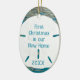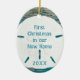 Tropische Weihnachtsschmuck für eine neue Zuhause. Erste Weihnachten in einer neuen Zuhause, Sand Dollar und tropischen Inselszene mit individuellem Text auf beiden Seiten. Geben Sie die neue Adresse und das festgelegte Jahr ein. Verwenden Sie für eine permanente Zuhause oder eine neu erworbene Zuhause.