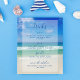 Dieses wunderschöne Hochzeitsgetränk-Menü am Strand bietet ein herrliches Foto der Meereswellen für ein Ziel-Event. Hübsche Strandfotografie gepaart mit eleganter weißer und blauer Typografie schafft ein elegantes, modernes Bar-Menü für Ihr tropisches Party oder Küstenluau.
