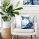 Das Strandkissen im tropischen BLue Green und im weißen Palm Blätter ist mit einem Kissen versehen. Ideal für ein Strandhaus Wohnzimmer, Küsten-Zuhause oder Hütte am Meer. Design erstellt von Totally Coast Designer Jillee K. Copyright © Totally Coast All Rights Reserved 2023