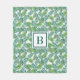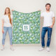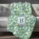 Monogram personalisierte Fleecedecke mit einem botanisch grünen exotischen tropischen Palmen Blätter pttern und personalisierten Monogramm in der Mitte.