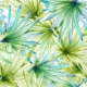 Aquarellfarbener Dschungelblattstoff in Akzenten von grün und blau.