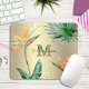 Tropical Palm Foliage Floral Monogram Script Mousepad