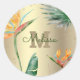 Tropical Palm Modern Monogram Script Gold Foil Runder Aufkleber