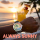 This round wall clock features a vibrant illustration of a tropical sunset. A silhouetted palm tree stretches over a colorful beach scene, complete with gentle waves and a radiant sun. The clock face has clear numerals and black hands, blending functionality with artistic design. It's perfect for adding a touch of tropical paradise to any room.