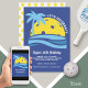 Eine lustige Einladung für Ihr nächstes Pickleball-Party. Das Design besticht durch eine Pickleball-Sonne, Palmen, Meereswellen vor blauem Hintergrund und individuelle Party-Details. Die Rückseite weist ein Muster von Pickleballs auf. Ideal für Erwachsene oder Kinder-Pickleball Geburtstagsparty, Pickleball Club Special Event, Pickleball Wochenende Ansammlung, Urlaub oder alltägliches Spielvergnügen. Ideal für alle, die am Meer oder am Strand Pickleball spielen oder leben. Pickleball - der beste Sport aller Zeiten!!