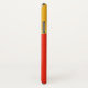 Stilvolles iPhone Gehäuse, mit einer Palmengrafik über einem orangen und gelben abstrakten Sonnenaufgang. Personalisieren Sie den Text für sich selbst oder als großartige Geschenkidee.