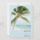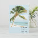Tropische Palmen Save the Date für Ihre Hochzeit in Urlaubsort in Key West, Florida oder an jedem anderen Strand. Die Rückseite des Save the Date mit einem Bogen-Foto und ist auf Ihre Hochzeitsdetails angepasst.