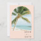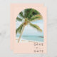 Tropische Palmen Save the Date für Ihre Hochzeit in Urlaubsort in Key West, Florida oder an jedem anderen Strand. Die Rückseite des Save the Date mit einem Bogen-Foto und ist auf Ihre Hochzeitsdetails angepasst.