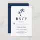 Tropical Palm Tree Navy Blue Beach Hochzeit RSVP Karte