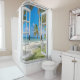 Schöne Palmen und Duschvorhänge, um jedes Badezimmer aufhellen. Schöne tropische Meerblick, um Sie an Ihren Urlaub erinnern. Erstellen Sie Ihr eigenes Design Duschzubehör.