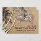 Ankündigen Sie Ihren besonderen Tag mit der "Tropical Palm Trees Beach Hochzeit in Urlaubsort Save the Date". Dieses Design mit Vintagen Palmen-Kunstwerken auf einem Imitat-Papier-Hintergrund strahlt rustikale Eleganz und tropischen Charme aus - perfekt für eine Hochzeitsfeier am Meer.