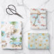 Fügen Sie tropische Strandvillen zu Ihrem Urlaub Geschenkverpackung mit diesen Küsten Weihnachtsblättern. Das Set besteht aus drei Koordinationsmustern: Strandszenen mit tropischen Palmen, niedliche Flamingos in Weihnachtsmannmützen und winzige Seesterne, die mit Glitzer verstreut sind.