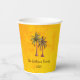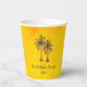 Tropical Bright Gold Sommer schwimmen Party Papier Becher, mit einer Palmen Illustration Design und anpassbare Schrift. Eine großartige Ergänzung zu Ihrem Picknick-Pool-Party mit einem Thema Strand.