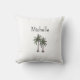 Tropische Palmen werfen Kissen, mit einer einfachen botanischen Illustration und Typografie Design. Mit individualisierbaren Buchstaben fügen Sie Ihren eigenen Namen hinzu. Ein Strand inspiriert Dekor für Ihre Zuhause oder Ferienhaus.