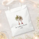 Tropische Sommerschwimmsack-Gastgeschenk-Tasche, mit einem Palmenbilderdesign und schwarz anpassbaren Buchstaben. Ideal für die Planung Ihres Picknick-Pool-Party mit einem Thema Strand.
