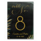 ANLEITUNGEN FÜR TABELLKARTENKARTEN: Erstellen Sie für jeden Tisch eine Tischnummer nach der anderen und fügen Sie diese nacheinander in Ihren Warenkorb ein. Tun Sie dies für so viele Tischkarten, die Sie benötigen. Bearbeiten Sie die unten stehende Tischnummer (sie aktualisiert beide Seiten) und legen Sie sie in Ihren Warenkorb. Um von Ihrem Warenkorb zu dieser Produktseite zurückzukehren, klicken Sie auf den blauen Produktnamen-Link, um weiterhin Karten zu Ihrem Warenkorb hinzuzufügen. Brauchst du Hilfe? Nachricht oder schicke mir einen Chat. Eine elegante Aquarellmalerei mit tropischer Hochzeitseinladung mit einem dramatischen, schwarzen Aquarellwaschbecken mit exquisit bemalten grünen Palmen-Blätter und schimmernden Goldakzenten. Eine lebendige Goldswash-Skript-Kalligraphie kündigt Ihre Hochzeitsdetails an.
