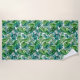Ein schönes blaues und grünes Badetuch mit tropischen Palmen, das Blätter