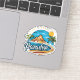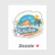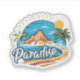This vibrant tropical logo features a sunny island scene with blue skies, palm trees, mountains, and clear ocean water. The bold circular frame and flowing “Paradise” script create a relaxed, modern beach aesthetic. With its bright colors and clean outlines, this design captures the feeling of escape, travel, and summer vibes, making it perfect for anyone who loves warm coastal scenery and tropical destinations.