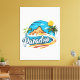 This vibrant tropical logo features a sunny island scene with blue skies, palm trees, mountains, and clear ocean water. The bold circular frame and flowing “Paradise” script create a relaxed, modern beach aesthetic. With its bright colors and clean outlines, this design captures the feeling of escape, travel, and summer vibes, making it perfect for anyone who loves warm coastal scenery and tropical destinations.
