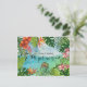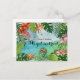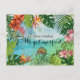 Share the joyful news of your destination elopement or tropical wedding with our original, hand-painted watercolor "We Got Married" announcement postcard. This unique landscape design features our signature lush frame of vibrant hibiscus, bird of paradise, and palms.