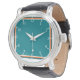 Diese Uhr mit einem aqua- und orangefarbenen Gesicht ist ziemlich modern.