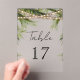 Elegant tropical theme wedding table number featuring modern typography.