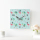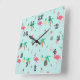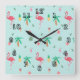 Tropical Summer Flamingo Blue Bedroom Collection Quadratische Wanduhr