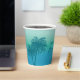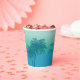 Serve drinks in cool tropical style with this aqua blue paper cup, designed by Destei. Two blue palm tree silhouettes rise against a soothing aqua gradient sky, while three birds fly across the sky. Perfect for birthdays, beach parties and summer celebrations, this cup brings a tropical vibe to any gathering.