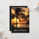 Eine romantische Probe-Dinner-Einladung mit einem Sonnenuntergang an einem tropischen Strand mit Palmen. Sie können die Hintergrundfarbe auf der Rückseite ändern, wenn Sie möchten.
