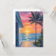 Tropical Sunset Palm Beach Ocean Watercolor Painting Card
