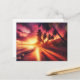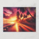 Entfliehen Sie einem atemberaubenden tropischen Paradies, in dem die Sonne in Orange, Rosa und lila Farbtönen Set. Diese Postkarte beherbergt einen ruhigen Strand, umgeben von schroffen Palmen, goldgelbem Sand und sanften Wellen, die den lebhaften Himmel widerspiegeln. Eine friedliche, traumhafte Flucht für Strandliebhaber, Reisende und Sonnenuntergang Bewunderer.