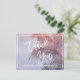 Dieser tropische Sonnenuntergang danke Postcard ist perfekt für ein Ziel oder Strand Hochzeit. Die Einrichtung besteht aus einem atemberaubenden, rosa, lila und blauen Sonnenuntergang mit einer Palme, die in der Brise weht. Personalisieren Sie die Kartenvorderseite mit einer kurzen Nachricht. Personalisieren Sie den Rücken mit einer längeren Danksagung Nachricht. Alternativ können Sie auch die Dankeschön-Meldungsvorlage auf der Rückseite ausgeben, um eine durchdachte personalisierte Notiz auf jeder Postkarte nach ihrer Ankunft zu schreiben. Diese Postkarten können für das Brautparty, Hochzeit oder jede besondere Veranstaltung verwendet werden.