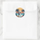 Enthält 20 kleine Aufkleber auf einem Blatt. Feiern Sie Ihre Liebe mit diesem romantischen Aufkleber, auf dem ein Paar am Hochzeitstag gegen einen schönen Sonnenuntergang am Strand mit Palmen steht.