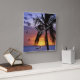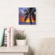 Tropischer Sonnenuntergang mit Palmen im Vordergrund, quadratische Wanduhr.