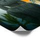 Tropical tiki statue sunset poster
