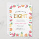 Eine tropische 8. Geburtstagsfeier für Ihre Kleine! Diese zauberhafte fruchtig-rosa Geburtstagseinladung beinhaltet Aquarellfrüchte wie Ananas, Wassermelonen, Orangen, Kirschen und Erdbeeren. Alle Details inklusive (außer Alter) sind anpassbar. Andere Altersgruppen sind auch in dieser Sammlung verfügbar, siehe unten..