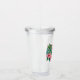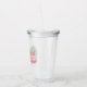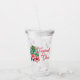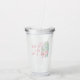 Trendy tropische Villen Acryltumbler. Der Vintage Schriftart ist mit Aquarell Hibiskus Blume in Rosa mit einem grünen tropischen Blatt betont. Passen Sie die Rückseite mit Ihrem Namen oder Initial an. Perfektes Geschenk für Ihre Hochzeitsfeier für eine Hochzeit in Urlaubsort.