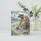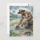 Tropical Village Life: Man Catching Crabs in Rain Postkarte