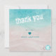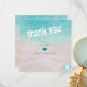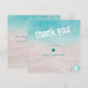 Tropical Watercolor Wedding Thank You card. A simple watercolor rendering of a tropical beach with pinkish-white sand and turquoise waters serves as the backdrop for this stylish and modern wedding thank you card. You can add your own personal message to the back of the card or leave it blank for handwritten notes.