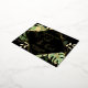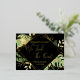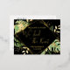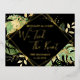 Diese moderne und elegante Posterkarte aus Gold ist ein einfacher Weg, um jedem lassen, dass er sich selbst kennt. "Wir tied the Knot" zusammen mit dem Namen und dem Erfinderstandort und Datum des Ehepaares werden auf der Vorderseite in der Folienfarbe Ihrer Wahl dargestellt. Der Text wird durch einen vereitelten Rahmen hervorgehoben. Tropische Blätter und Farne auf schwarzem Hintergrund ragen hinter dem Rahmen heraus. Goldfolien-Spritzer verleihen dem Design ein wenig raffinierte Lustigkeit. Auf der Rückseite der Postkarte befinden sich die Details zur Hochzeitsfeier in schwarz.
