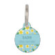 Desteis illustrierte tropische weiße frangipani Blume Muster. Die Hintergrundfarbe ist blau. Auf der Rückseite befinden sich personalisierbare Textbereiche für den Namen des Tieres und für eine Telefonnummer.