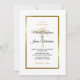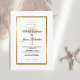 Mit dieser eleganten Einladung mit modernem Drehbuch, schwarzem und goldenem Text, inklusive einer künstlerischen Palme und metallischem Rahmen aus Gold, laden Sie Ihre Gäste ein, Ihren besonderen Tag zu feiern. Vorder und hinten ist ein weißer Hintergrund.