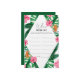 Tropical Palms Watercolor Bridal Dusche Einladung. Das Design besticht durch ein elegantes Bouquet mit klassischen Strandfarben und Blume, darunter rosafarbener Hibiskus, orangefarbene und blaue Paradiesvögel, grüne Vegetation und dunkelgrünes Palmenblatt.